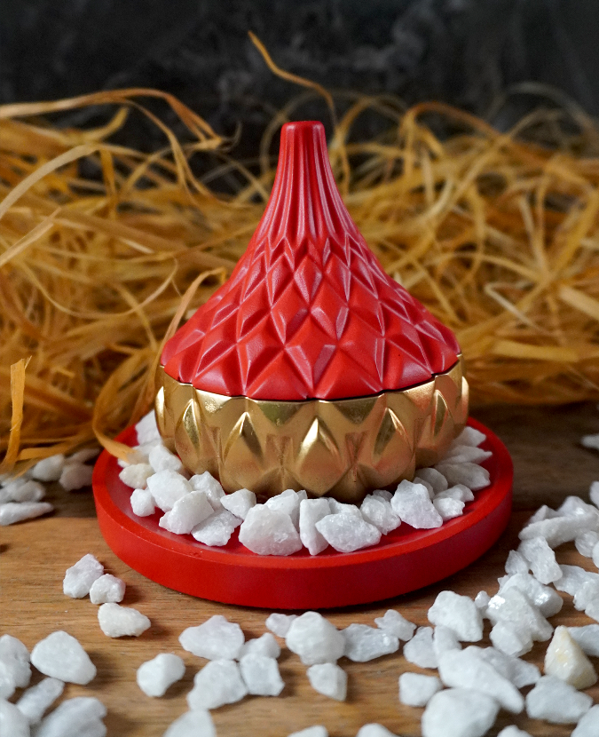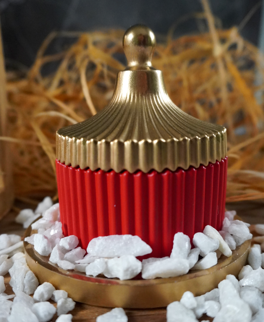 Стилизованные в красно-золотые цвета подстаканники, дополняющие ароматическую композицию визуально.