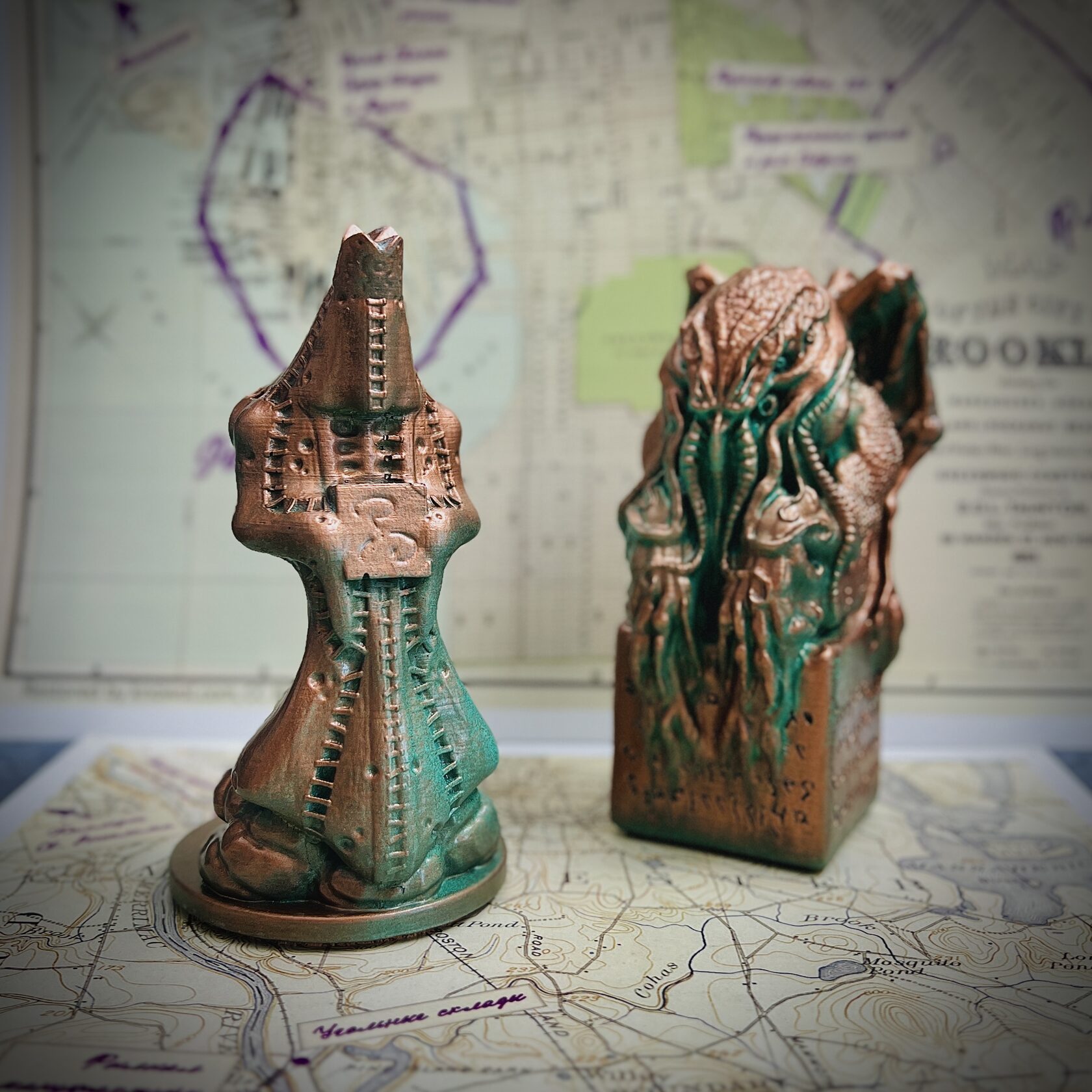 Некоторые из наиболее преданных последователей джентельмена из Провиденса считают, что Ктулху и Хастур - братья. Неизвестно, какие безумные силы мироздания породили этих великих существ. Так же неизвестно, что могло поселить среди братьев непримиримый раздор. Не рекомендуется хранить идолы в одной коробке продолжительное время!