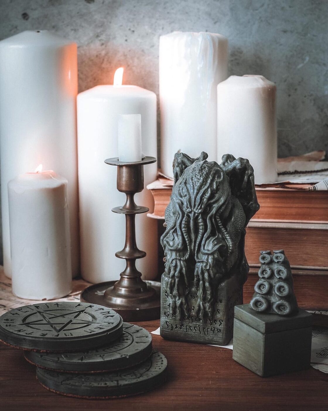Представляем вам загадочный дроп, добытый нами в «Точке Немо». Платформы, испещренные неописуемыми знаками, статуэтка Великого Древнего на пьедестале и небольшая таинственная свеча, обладающая экзотическим и манящим ароматом.