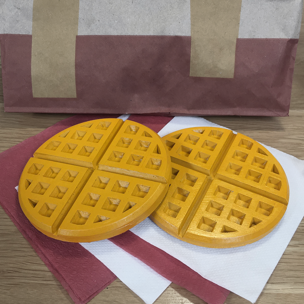 2 подстаканника жёлтого оттенкаа, повторяющие формой знаменитые замороженные вафли бренда Eggo, разделённые на 4 части.