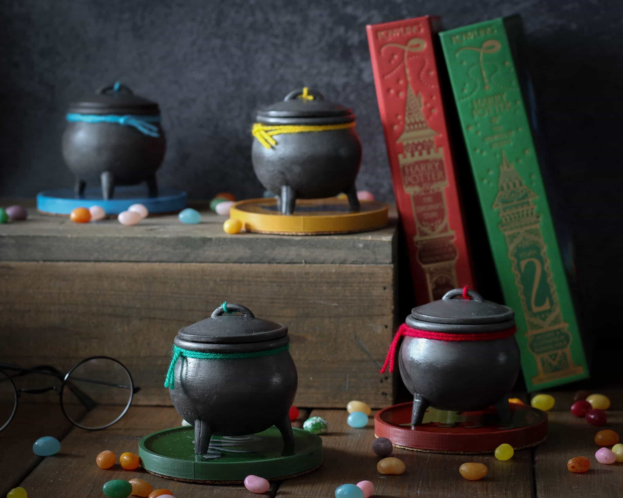 Четыре замечательных винтажных котелка из архитектурного бетона с уникальными ароматами. Каждый котелок хранит в себе аромат, навеянный духом факультета.